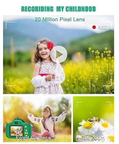 Aparat cyfrowy dla dzieci wyposażony w 2-calowy ekran IPS 20 milionów pikseli HD z podwójnym obiektywem o rozdzielczości 1080P, znacznie poprawia jakość zdjęć i filmów, zapisze wyraźny, wspaniały moment dla chłopców lub dziewcząt.