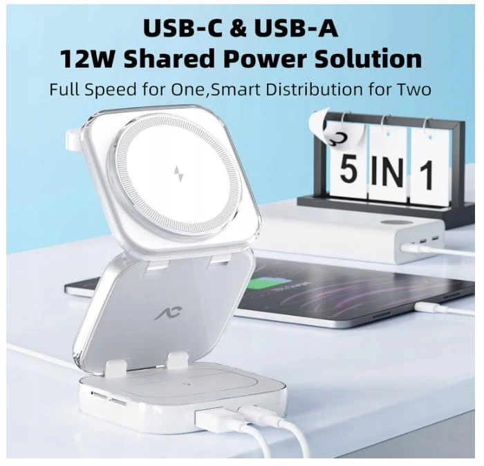 Bezprzewodowa ładowarka 5w1 MagSafe, stacja ładująca AC ISLAND, 15 W