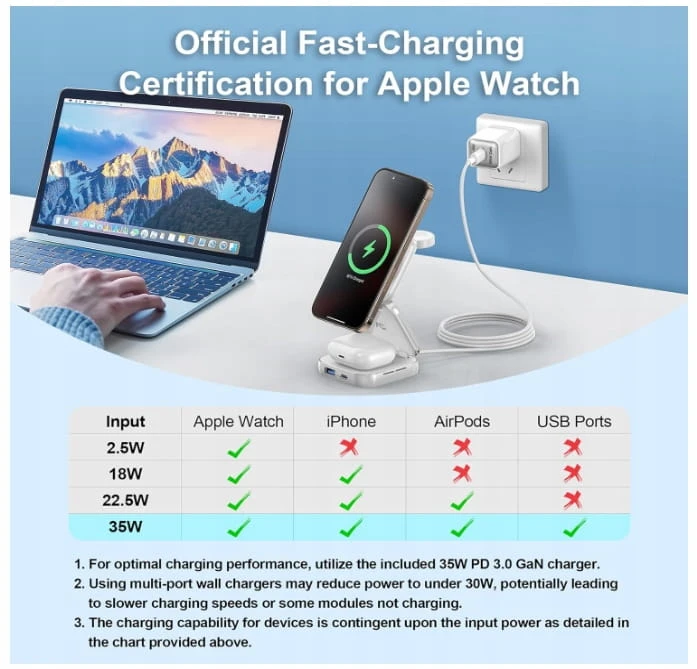 - Max Apple Watch Charging Power: 2.5W / 3W / 5W