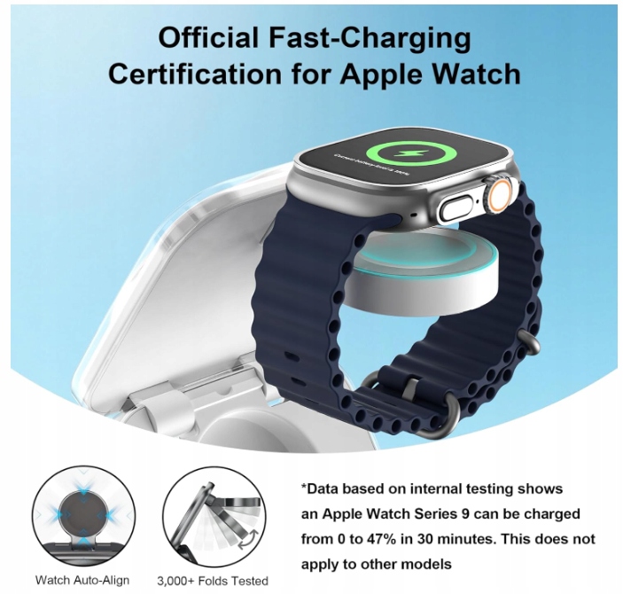 - Lista kompatybilności : Seria iPhone 12-17 (z wyjątkiem iPhone'a 16e); tylko etui z funkcją ładowania bezprzewodowego i etui MagSafe AirPods; seria Apple Watch 4-11 i SE / seria Ultra