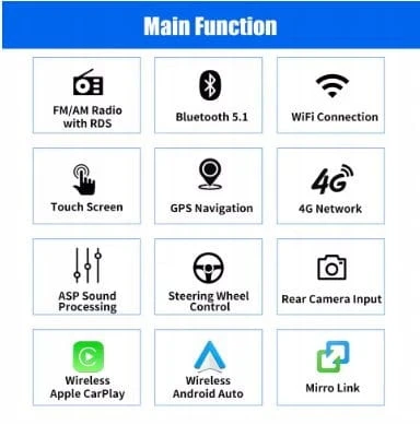Radio RDS/FM i Bluetooth oraz dźwięk ASP:Obsługuje Bluetooth 5.0, z wbudowanym mikrofonem, dzięki czemu możesz rozmawiać bez użycia rąk podczas jazdy.Obsługuje dostęp do książki telefonicznej, interfejsu odtwarzania muzyki itp.RDS obsługuje.Można zapisać 18 nadajników radiowych FM.Wbudowany układ ASP.Obsługuje 32-pasmową regulację EQ, którą można ustawić zgodnie z własnymi osobistymi preferencjami. Jest bardzo podobny do Twojego oryginalnego dźwięku. 4 x 45 W wzmacniacza, dźwięku przestrzennego i subwoofera.