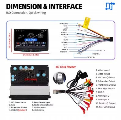 Kapazitiver 10,1-Zoll-HD-Ekran dotykowy (1280*720):To radio samochodowe o rozdzielczości 1024 x 600,6 GB RAM + 64 GB ROM, 10,1-Zoll-IPS-Touchscreen (ekran może obracać się o 360° gedreht werden) obsługuje 1080P HD-Videowiedergabe für hervorragende Sicht, mehrere gut gestaltete Benutzeroberflächen verfügbar für Ihre beste Wahl für ein Autoradio.Rozmiar instalacji radia wynosi 178 x 50 mm, rozmiar ekranu 262 x 156 mm.Upewnij się, że rozmiar Twojego deski rozdzielczej jest większy niż rozmiar radia.
