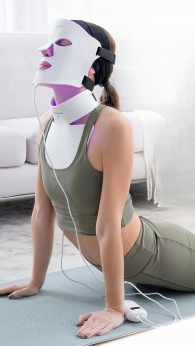 - Koniec z dyskomfortem wokół oczu lub okolic nosa. Opracowaliśmy najlżejszą i najwygodniejszą maskę do terapii światłem niebieskim, zielonym i czerwonym, która działa również na dekolt. Łatwy w konfiguracji i bez użycia rąk.