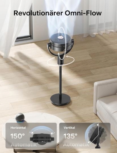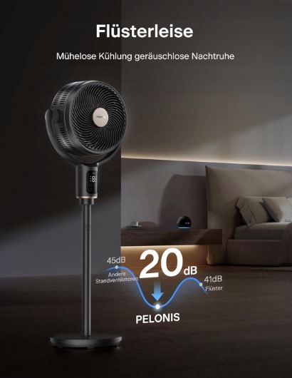 PELONIS Inteligentny wentylator stojący 135°, cichy wentylator podłogowy