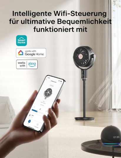 - Ulepszone inteligentne sterowanie: zwiększ swój dom dzięki naszemu innowacyjnemu wentylatorowi Smart. Łatwo ustawiaj tryby, kąt oscylacji i prędkość za pomocą poleceń głosowych, smartfona lub dołączonego pilota zdalnego sterowania. Bezproblemowo zintegruj ten wentylator z nowoczesnym, inteligentnym domem i ciesz się dodatkowym komfortem i wyrafinowaniem. Doświadcz prawdziwego inteligentnego sterowania jak nigdy dotąd.