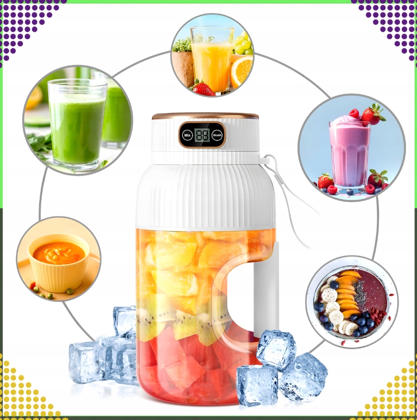 Zadbaj o zdrowie i wygodę każdego dnia! Z naszym przenośnym blenderem przygotujesz pyszne smoothie i soki gdziekolwiek jesteś – w pracy, w domu czy w podróży ???