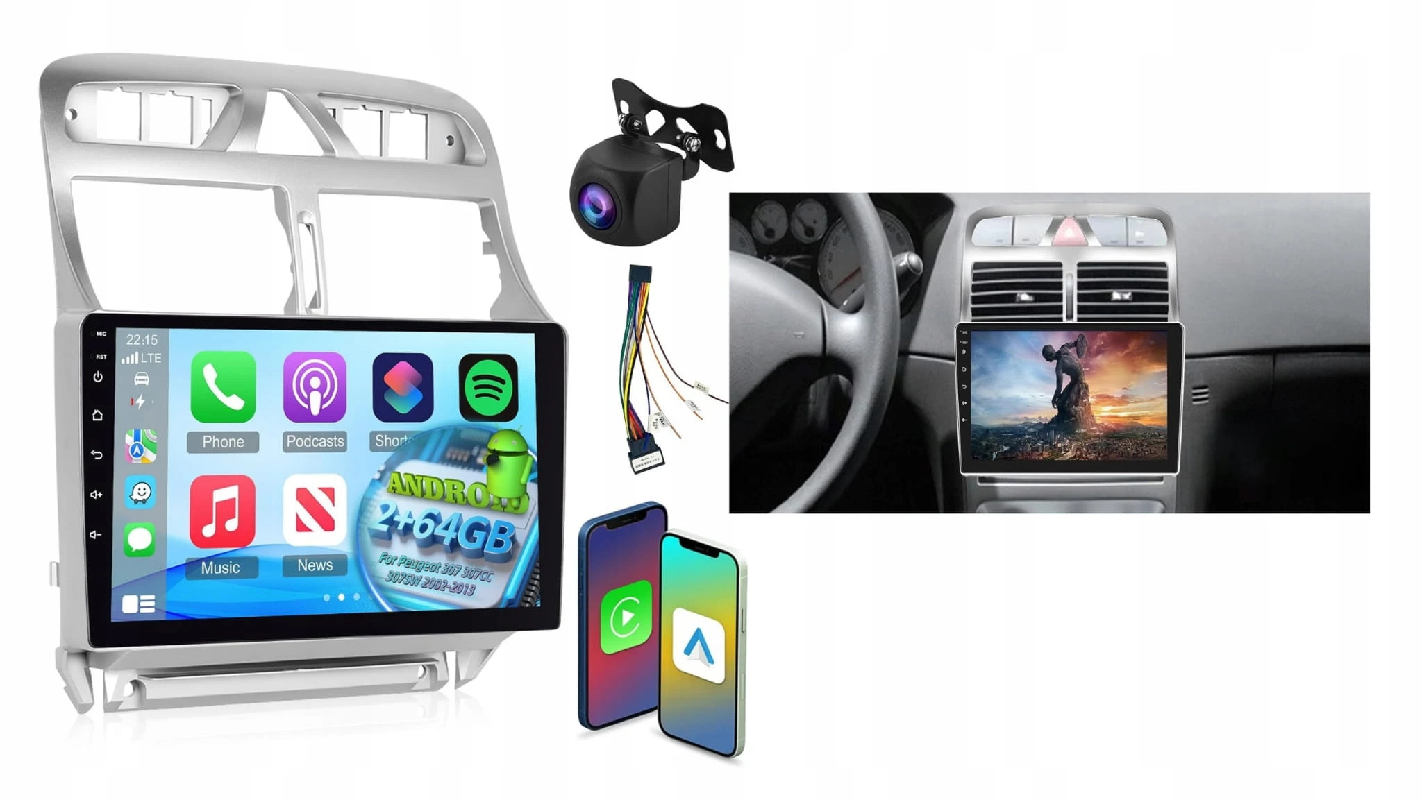 Radio Nawigacja Android Do Peugeot 307 307CC 2/64GB Android Auto Carplay