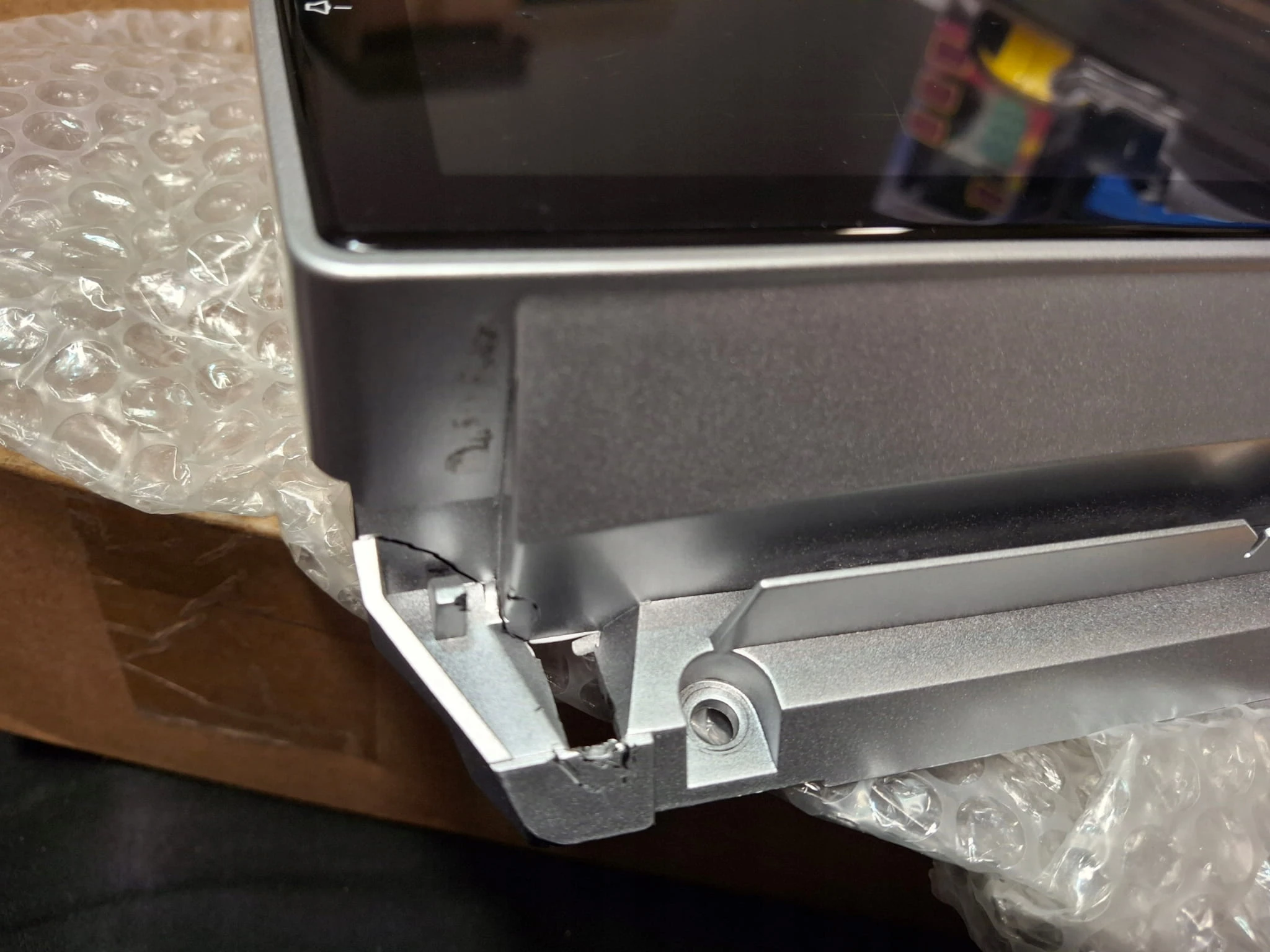 RADIO POWYSTAWOWE NIEUŻYWANE Z FABRYCZNĄ FOLIĄ NA EKRANIE. DELIKATNE PĘKNIĘCIĘ PRZY DOLNYM LEWYM MOCOWANIU WIDOCZNE NA ZDJĘCIU.