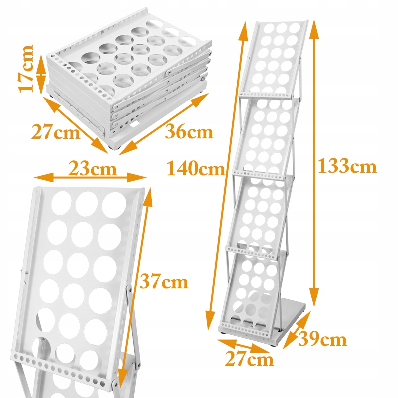 STOJAK na ULOTKI GAZETY A4 SKŁADANY 4 półki BIAŁY + torba do przechowywania