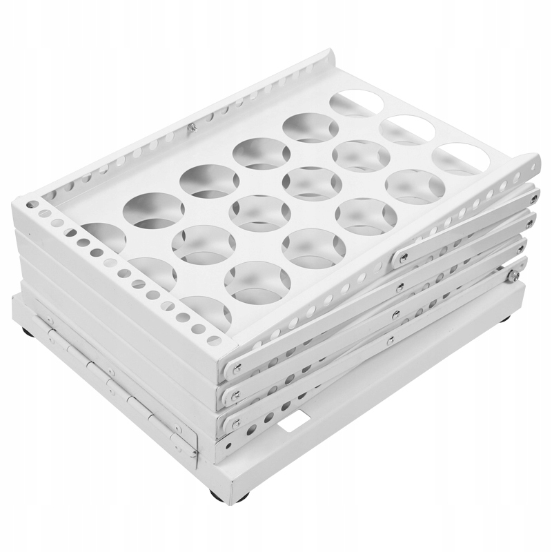 Stojak wyposażony jest w 4 półki oraz posiada łatwy i szybki system składania i rozkładania, a także blokadę przeciw samoczynnemu złożeniu.