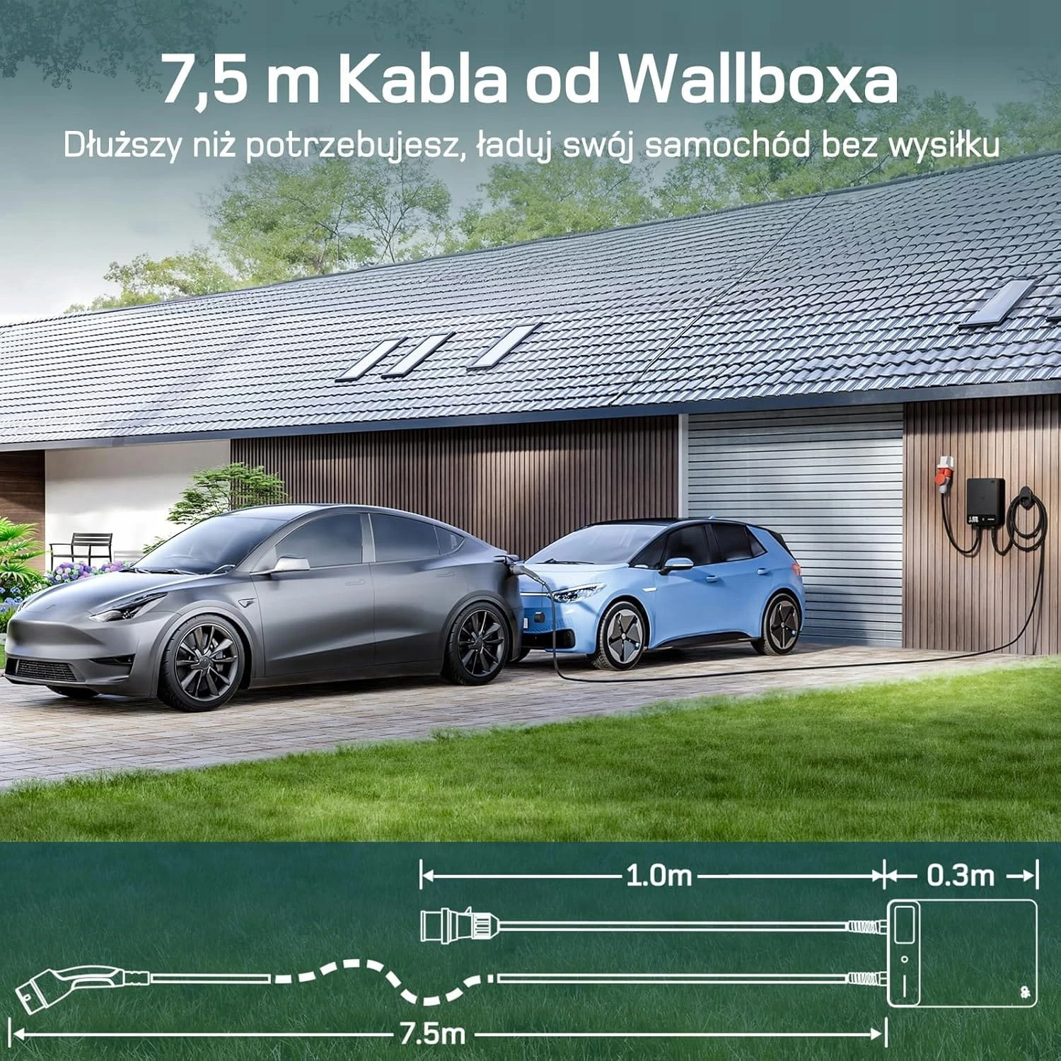 - Wyświetlacz LCD i długość kabla 7,5 m: wyświetlacz LCD wyświetla w czasie rzeczywistym informacje o mocy, natężeniu prądu, napięciu i naładowanej pojemności oraz zapewnia przejrzysty przegląd stanu pracy. Kabel o długości 7,5 m jest wystarczająco długi, aby naładować pojazd w garażu lub na podjeździe. Uwaga: napięcie w czasie rzeczywistym pokazuje tylko napięcie fazowe (230 V), a nie napięcie przewodu (400 V).