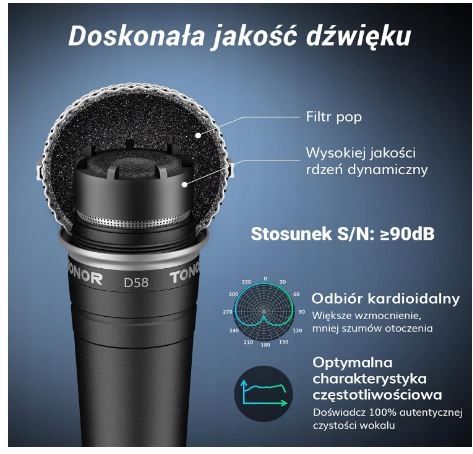 TONOR D58 Mikrofon Wokalny, Przewodowy Filtr Pop Siatka Sferyczna
