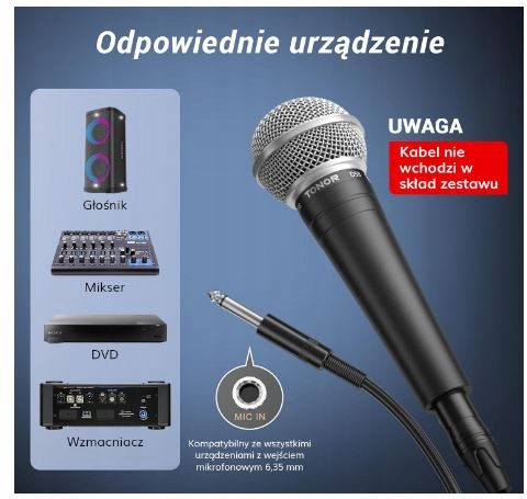 - Łatwy w użyciu: Umożliwia bezpośrednie podłączenie przewodowych mikrofonów karaoke z gniazdem mikrofonowym 1/4 cala (6,35 mm) do urządzeń takich jak wzmacniacze, miksery, karty dźwiękowe, maszyny karaoke, odtwarzacze DVD itp. Wystarczy podłączyć i grać, zalecana odległość dla najlepszej wydajności wynosi 5-10 cm. Należy pamiętać, że kable nie są zawarte w opakowaniu i należy je zakupić osobno.