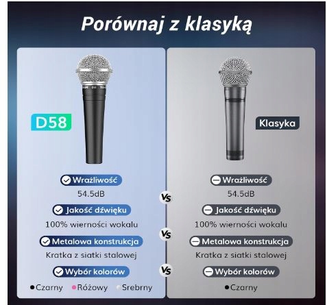- Wszechstronne zastosowania: D58 nadaje się nie tylko do śpiewania lub wystąpień publicznych na scenie, ale także jest idealnym towarzyszem do nagrywania i transmisji na żywo. Skutecznie izoluje wokal i instrumenty, zapewniając profesjonalną wydajność, dzięki czemu jest idealnym wyborem do każdego zastosowania na żywo.