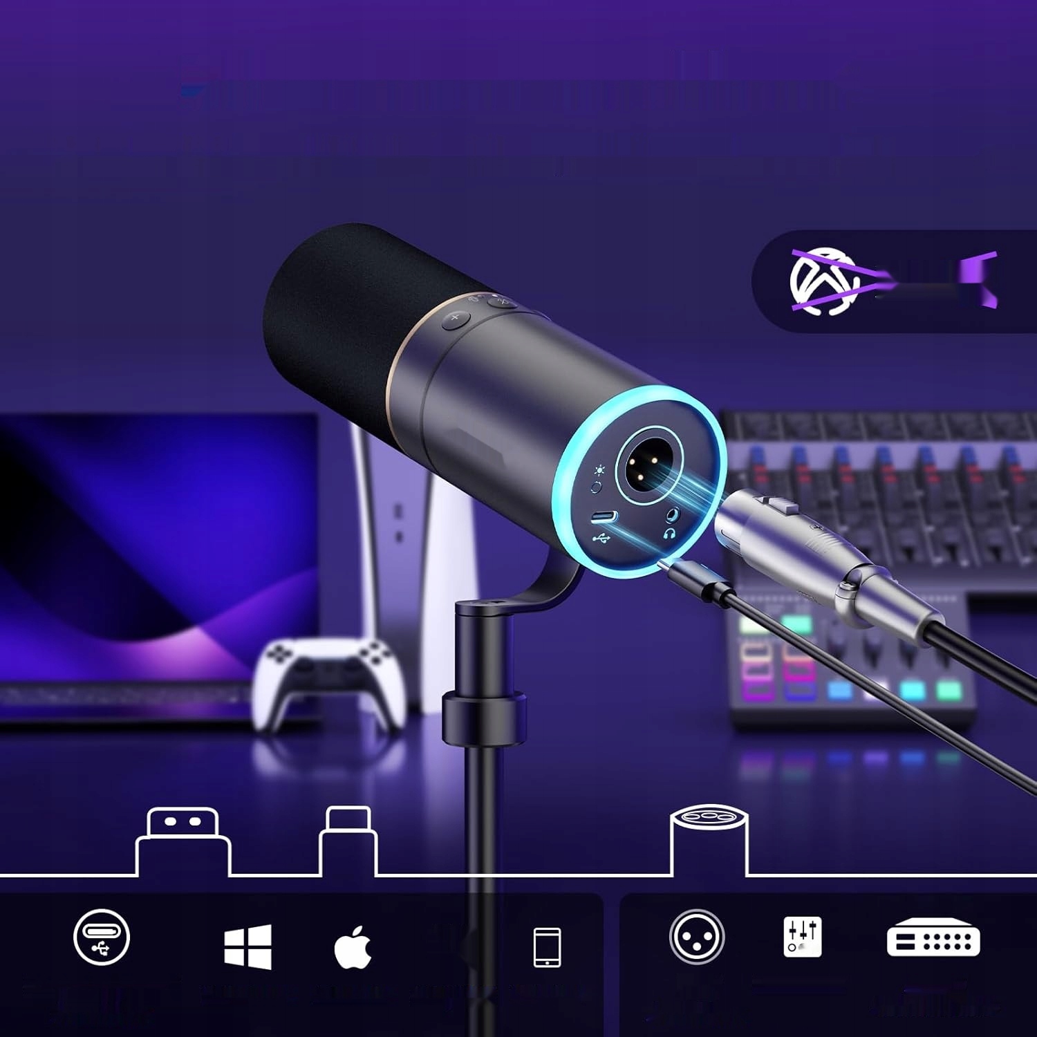 - Łatwa obsługa: Dzięki złączom USB, Type C oraz XLR mikrofon jest kompatybilny z komputerami, konsolami PS5, a nawet smartfonami.