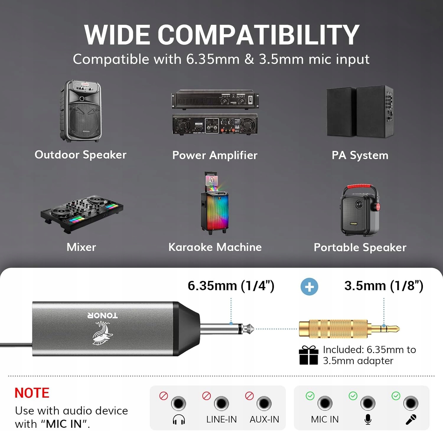 Tonor TW-520 2 x bezprzewodowy mikrofon kardioidalny + odbiornik PRO-UHF