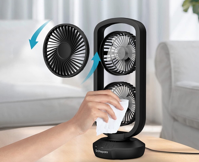 – Dwa wentylatory zapewniają mocny przepływ powietrza, pomagając utrzymać przyjemny chłód. Trzy tryby prędkości (niski, średni, wysoki) pozwalają dostosować intensywność nawiewu.