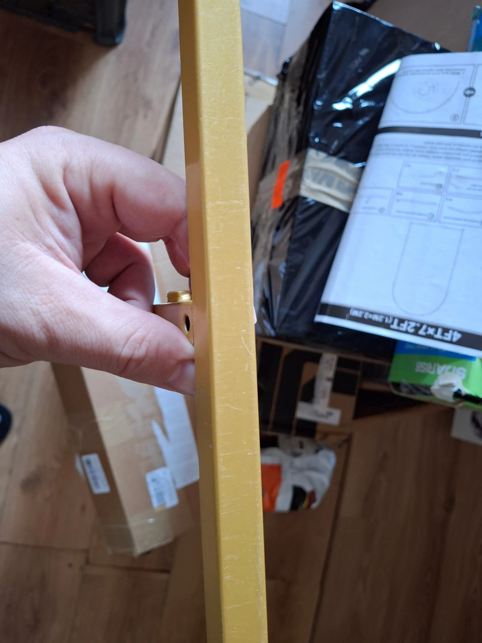 Łuk używany w bardzo dobrym stanie, wszystkie elementy w zestawie łącznie ze śrubami i kluczami potrzebnymi do skręcenia. Widoczne ślady na dolnych podstawach powstałe na skutek przesuwania po podłożu. Zdjęcia w załączniku do oferty