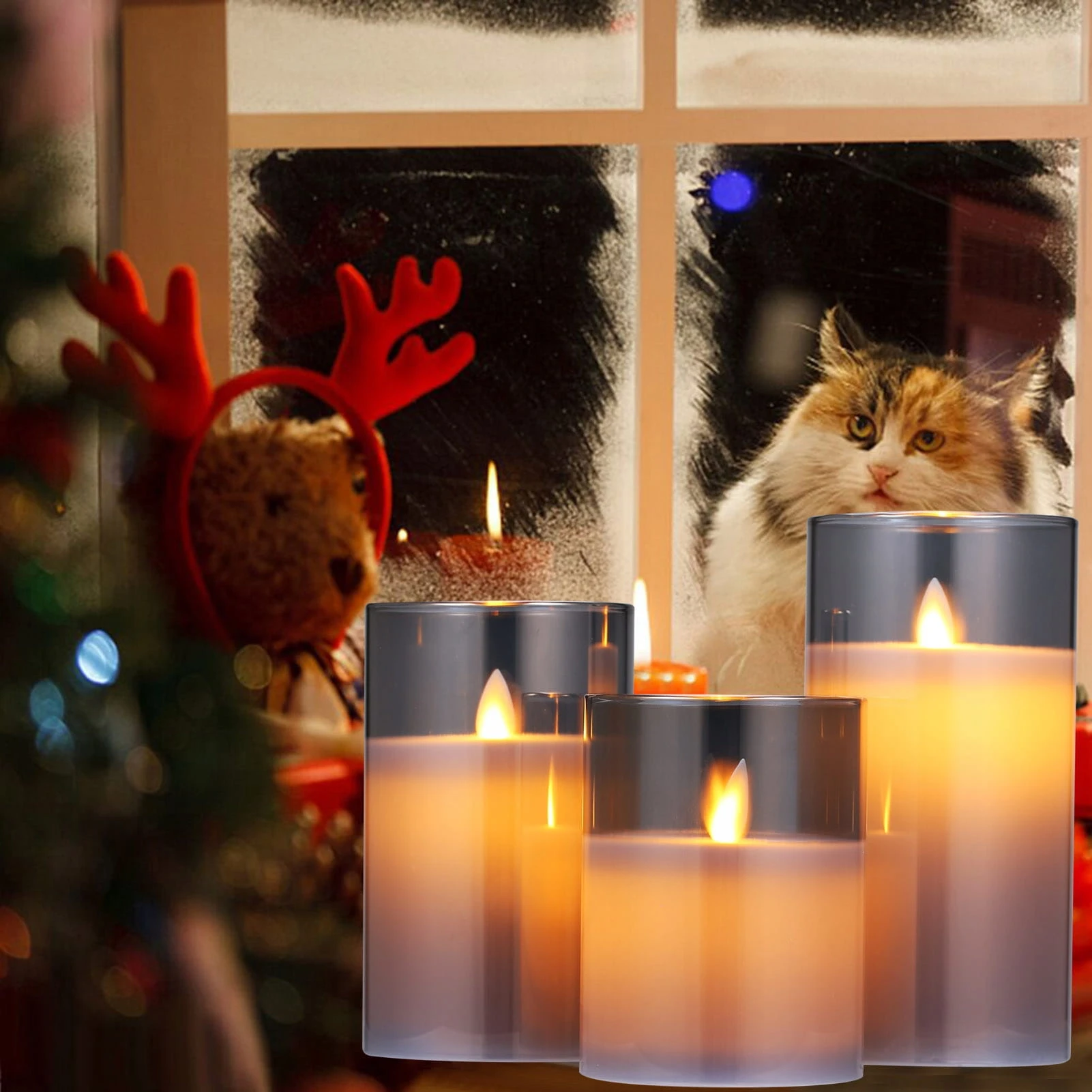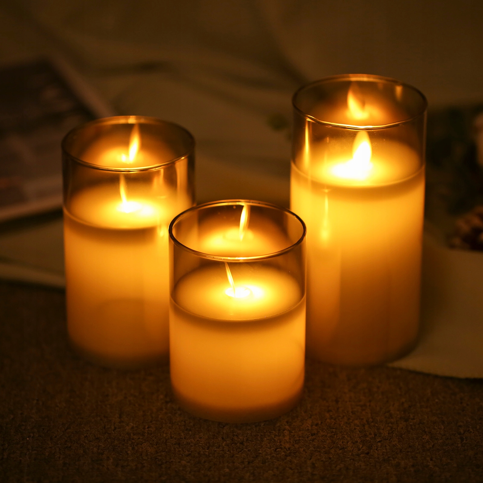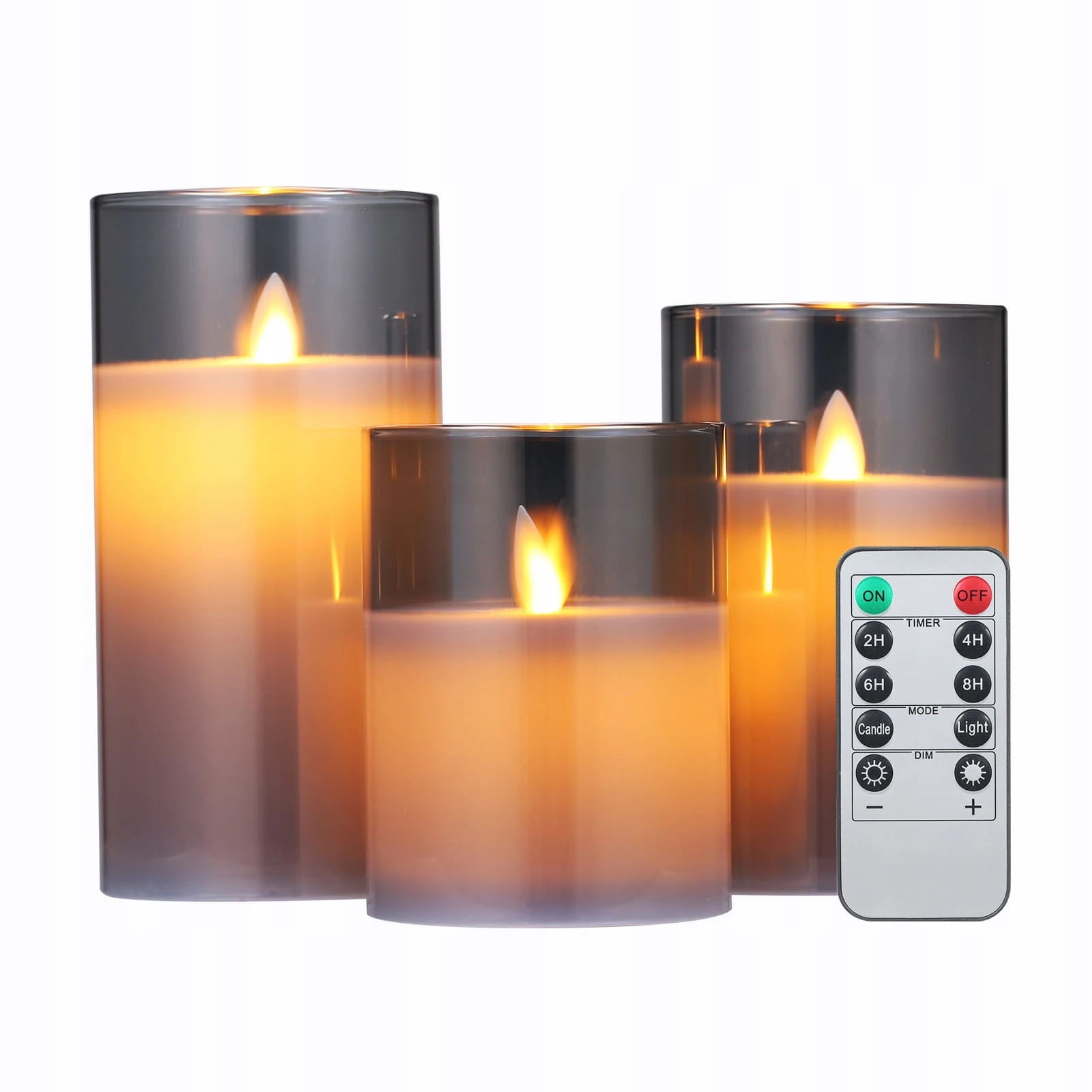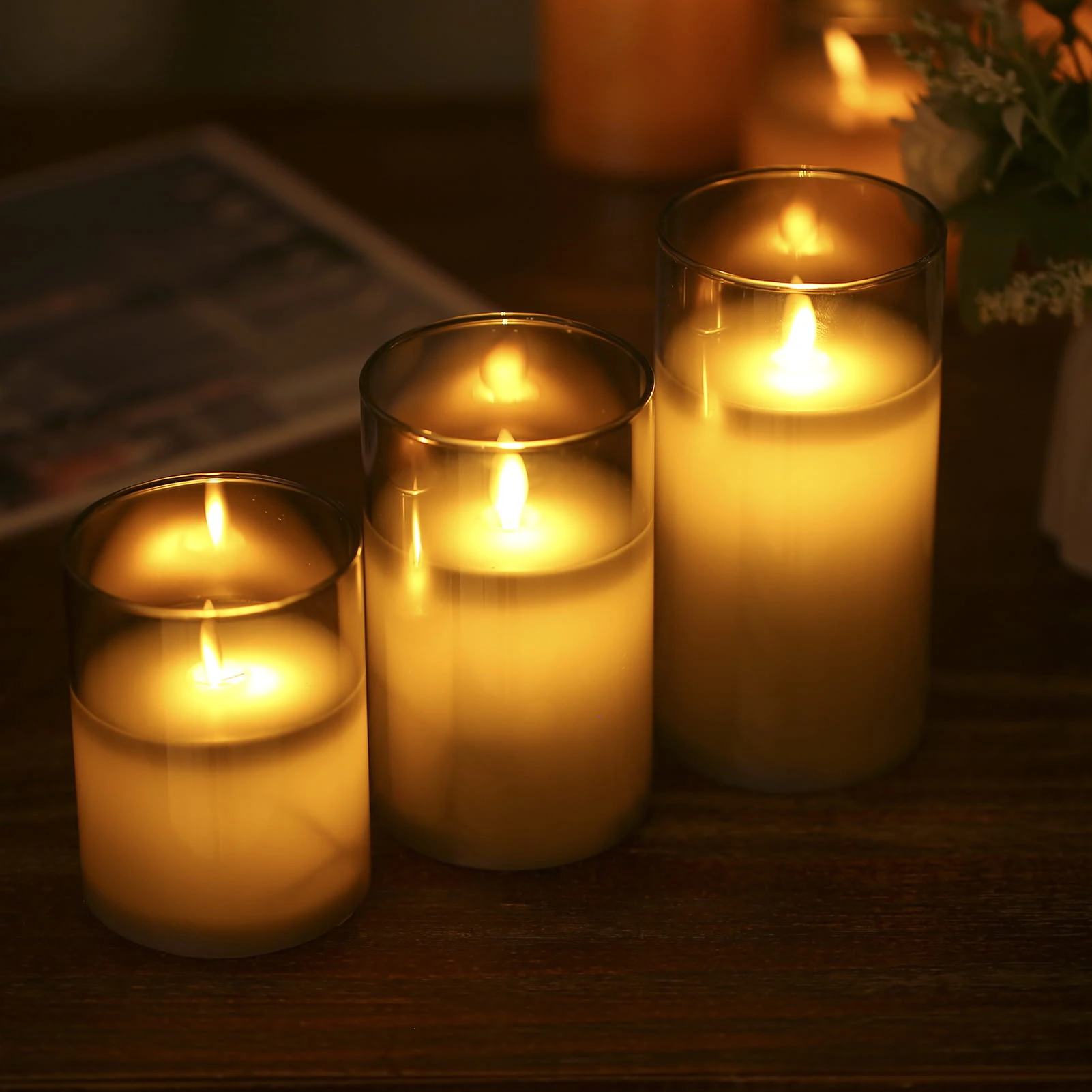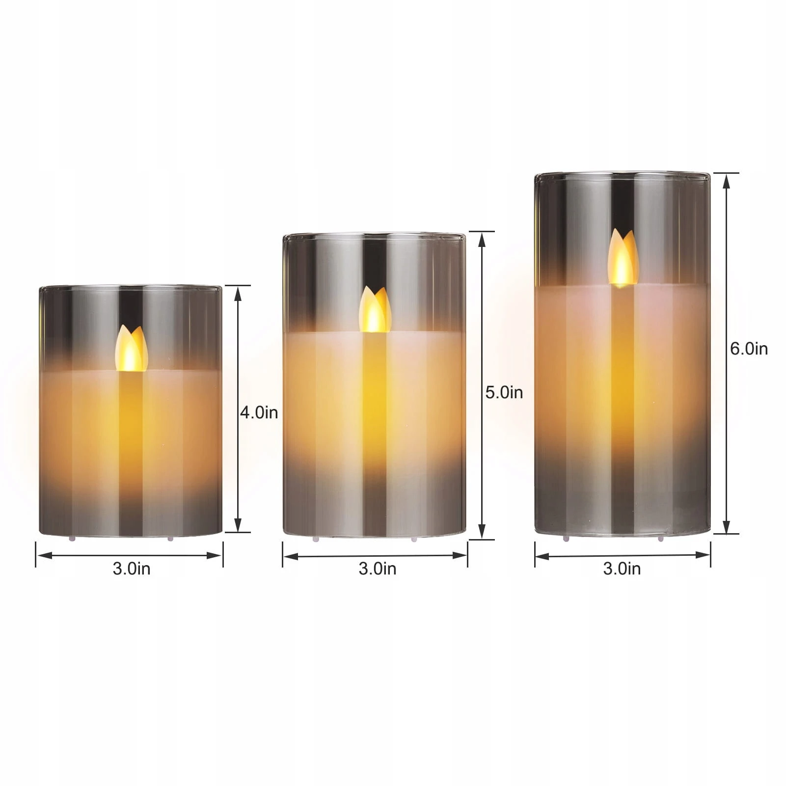 Zestaw 3 szklanych świec LED woskowe bezpłomieniowe z pilotem i timerem