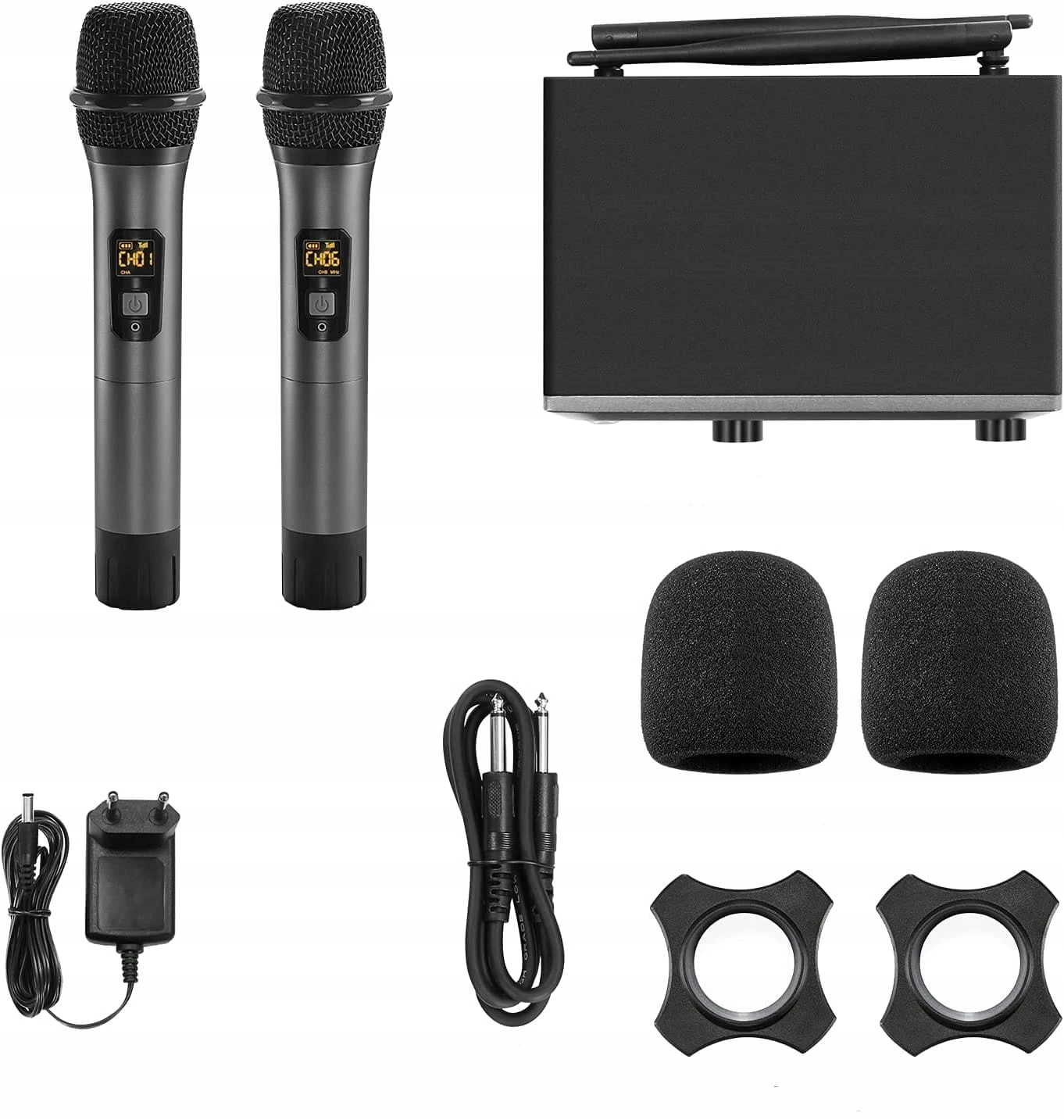 Wytrzymały materiał: W całości metalowy mikrofon z siatką stalową, bardzo odporny na uderzenia i korozję. Bardzo wytrzymały i trwały Na wyświetlaczu LCD można łatwo zobaczyć częstotliwość, sygnał, poziom naładowania baterii i inne informacje.